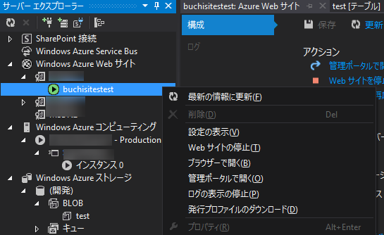 サーバーエクスプローラーでAzure Webサイトを管理できるようになりました。
