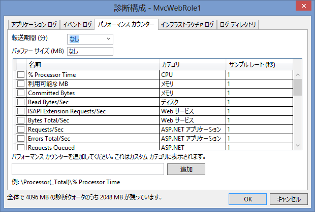 設定内容は.wadcfgファイルとして保存されます。(Blob上に一緒に転送されて構成されるのでしょう)