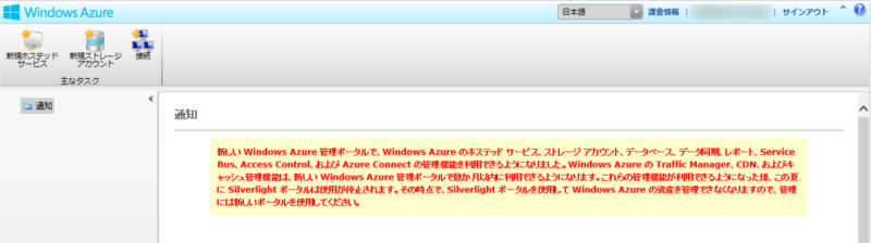 新しい Windows Azure 管理ポータルで、Windows Azure のホステッド サービス、ストレージ アカウント、データベース、データ同期、レポート、Service Bus、Access Control、および Azure Connect の管理機能を利用できるようになりました。Windows Azure の Traffic Manager、CDN、およびキャッシュ管理機能は、新しい Windows Azure 管理ポータルで数か月以内に利用できるようになります。これらの管理機能が利用できるようになった後、この夏に Silverlight ポータルは使用が停止されます。その時点で、Silverlight ポータルを使用して Windows Azure の資産を管理できなくなりますので、管理には新しいポータルを使用してください。
