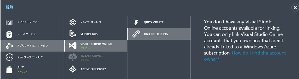 ちなみにAzureの管理ポータルからも紐づけや作成ができるようなのですが、、、