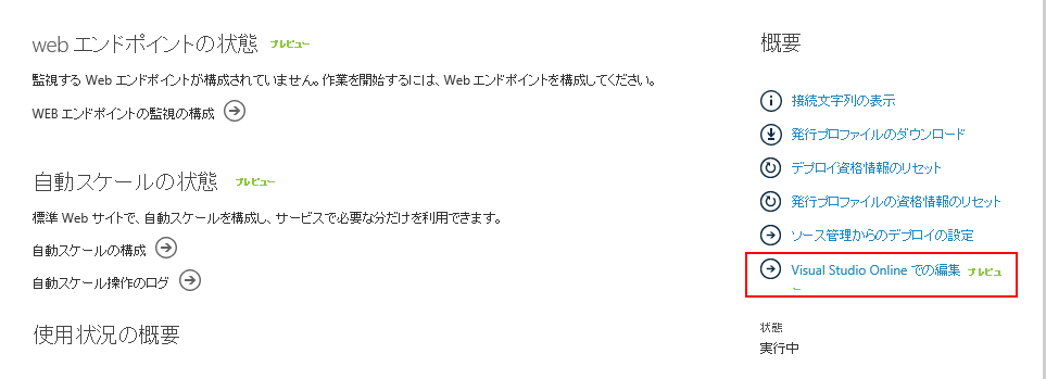 さて1つ目のVisual Studio Onlineでの編集ですが、これを有効にするとブラウザ上で直接開発が行えるようになります。