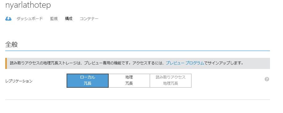有効になると「読み取りアクセス 地理冗長」が選択できるようになります。