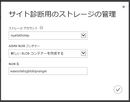 また、Windows Azure Webサイトのサイト診断のログをBlobに保存するときにコンテナを新規作成することができるようになりました。
