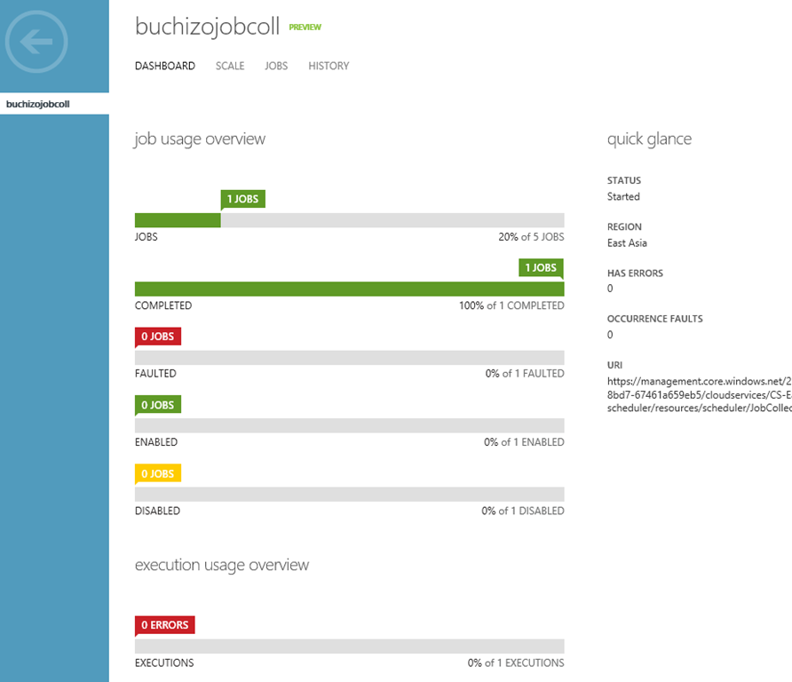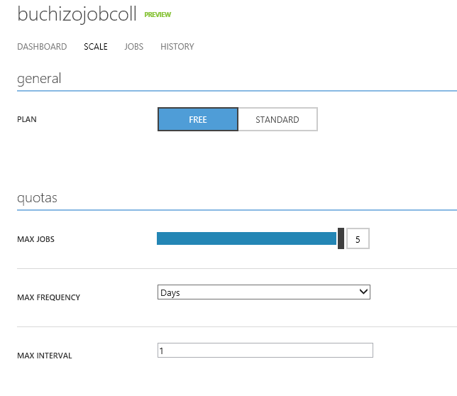 また管理ポータルではジョブの実行履歴やスケール(ジョブ数や最大間隔の設定)が行えます。