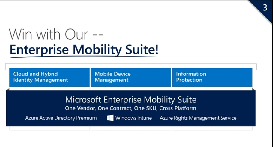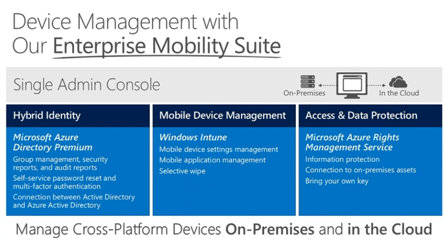 裏はAzureで支えてます。という感じでAzure PremiumやAzureRM、Windows Intuneなどが使えるお得なEnterprise Mobility Suite(EMS)が今後のイチオシっぽいです。