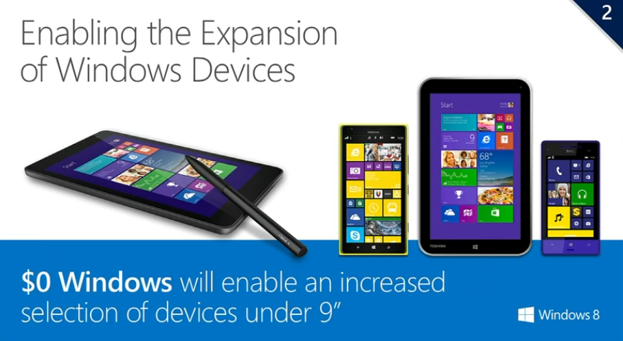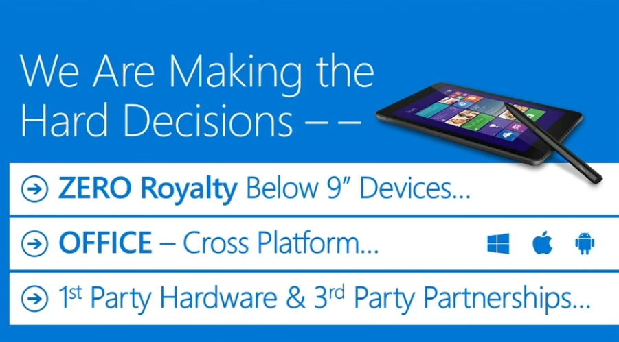 9インチ以下のデバイスのOSコストをゼロにしたりOfficeをクロスプラットフォームで出したりしました。
