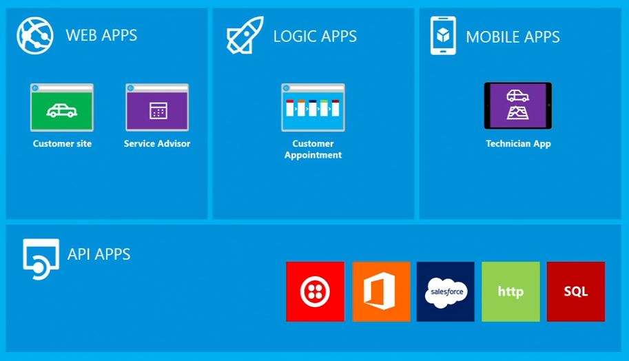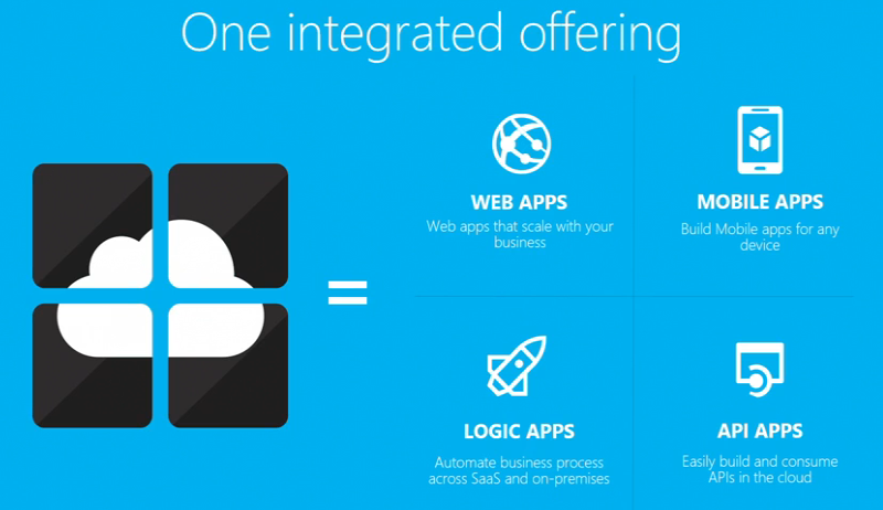 これまでのWebsitesやMobile Servicesも名前を変えてWeb Apps、Mobile Appsとなり新しくLogic Apps、API Appsも加わりました。