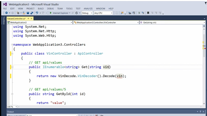でもこれじゃちょっと誰がくるとかわからないのでカスタムのAPI AppsなアプリをVisual Studioからテンプレート選んでさくっと作成します。