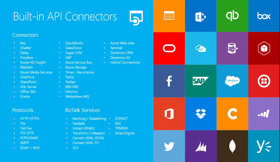 Logic Apps、API Appsはマイクロサービス的に小さな役割のサービスを動かして連携させることができます。既にバンドルされてるコネクタ(サービス)として(Marketplaceから追加できるものとして)Office 365やDropbox、Salesforceなどなどがあります。