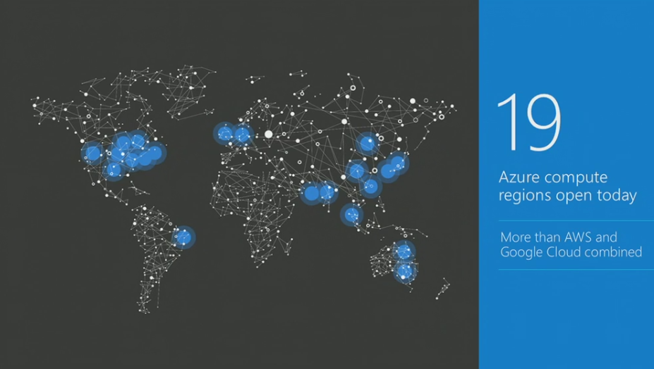 Azureも今や19リージョン(予定の2か所込)。AWSやGoogleより多いとな。