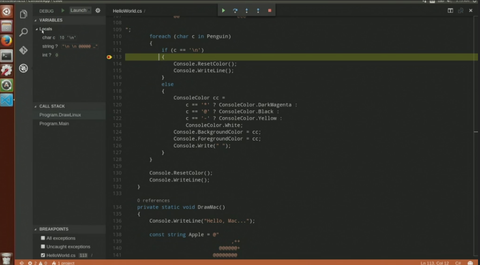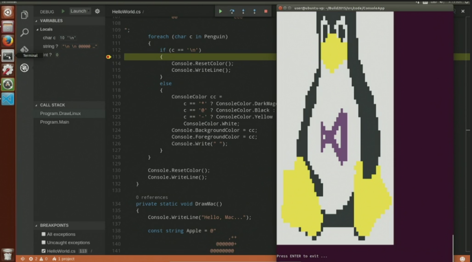 デバッグも対応のようです。さすがに今は.NET CoreなASP.NETとかNode.jsぐらいな気がしますが。RoslynやらCoreCLRのオープン化の成果ですかね。