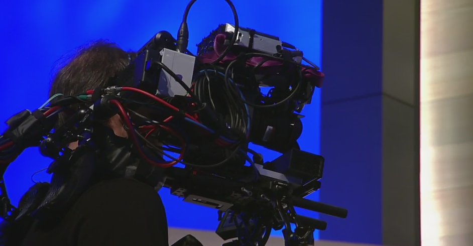 その辺の壁に動画ながしたり人に追従して移動したり!撮影機材もすごいことになってますね。