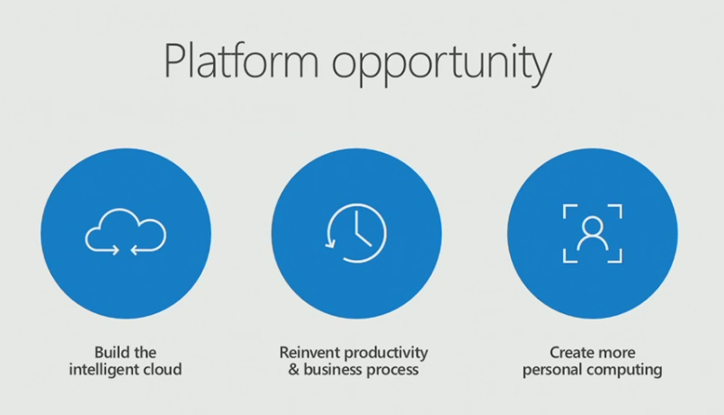 プラットフォームとしてクラウド統合、ビジネスプロセスや生産性の改革、より多くのパーソナルコンピューティングという機会がやってきましたと。