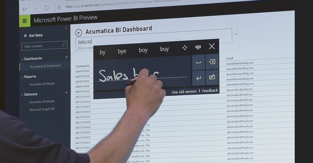 うってかわって業務アプリ的なところからPower BI+Surface Hubのデモ。