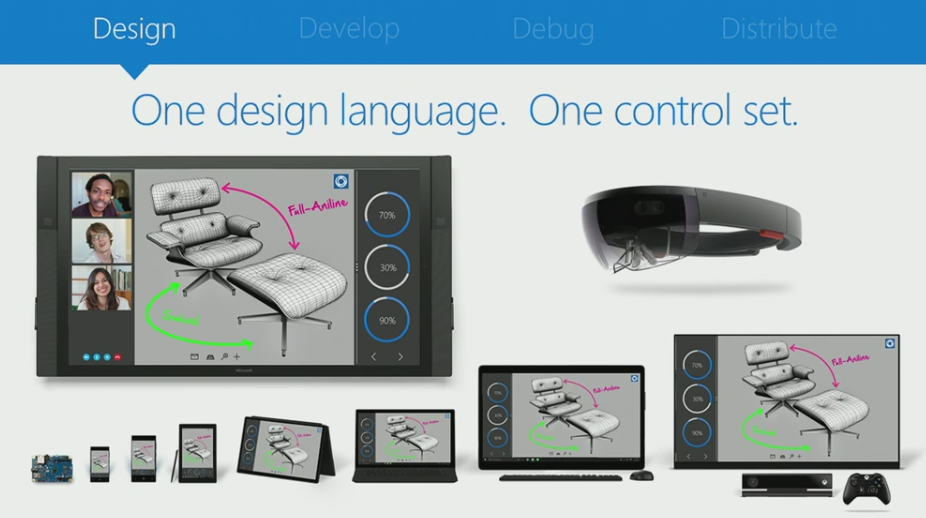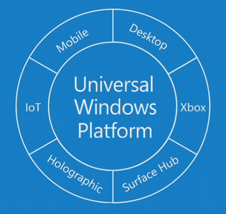 Universal Windows PlatformではPC、Mobile、Surface Hub、Holographic(HoloLens)、IoT、XBoxなどをサポート。