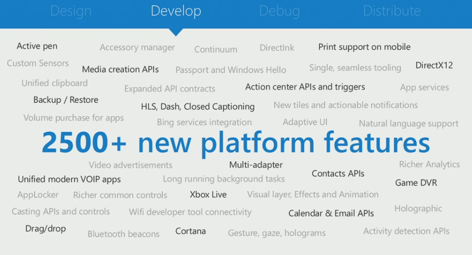 Drag&DropやCortana、Gameなどなどたくさん。実際のデモはKevin氏から。