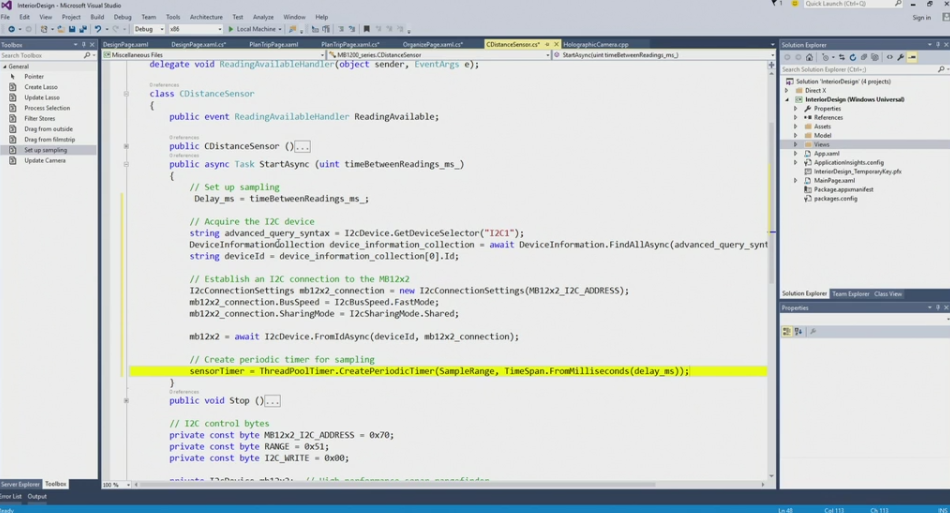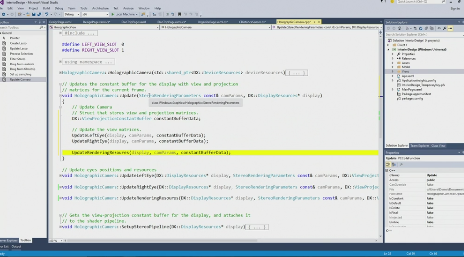 見えにくいけどHoloLensに関連するコードがちらっと見えますね。(左目用と右目用のデータとか)