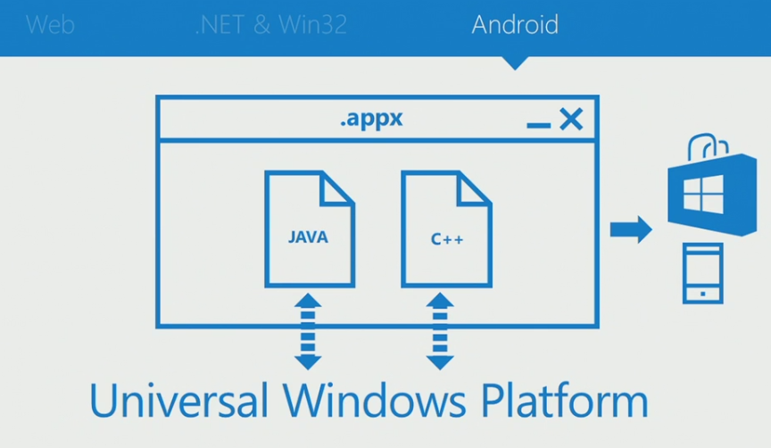 Androidも同様にJava/C++で書いたものを.appxにまとめてしまえます。