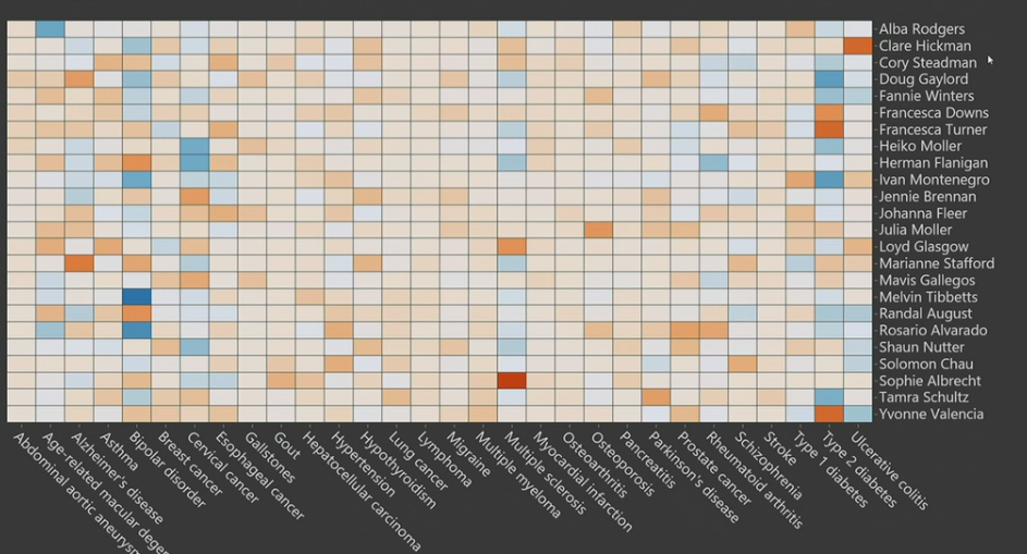 たとえばSophieは多発性硬化症(Multiple Sclerosis)になる確率が高いとか。