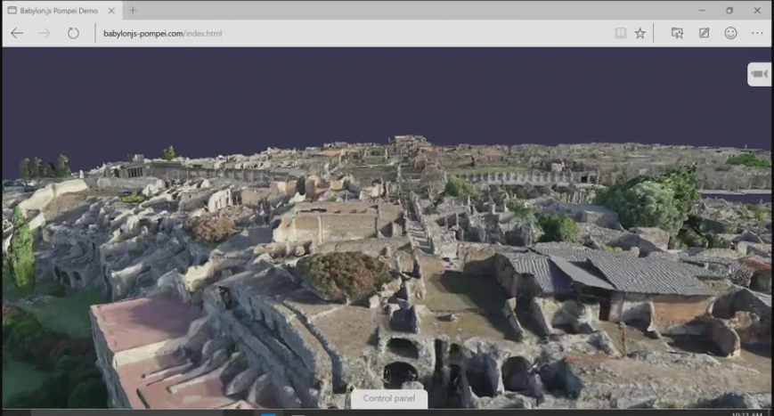 次は表現力的な話ですね。ポンペイ遺跡を3Dで復元したやつをMicrosoft Edgeで見せつつ。
