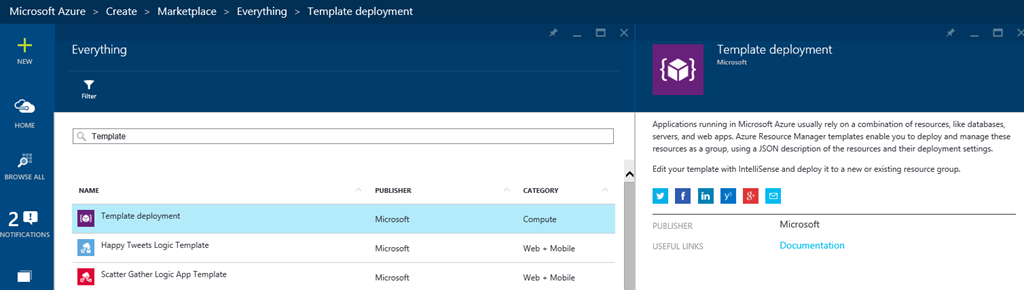 - Marketplaceで「Tamplate deployment」で探せば使えます。