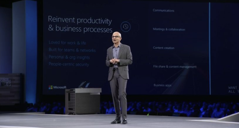 で、BuildやIgniteでも言っていましたが生産性とビジネスプロセスを改革するというのがキーメッセージです。![]()
