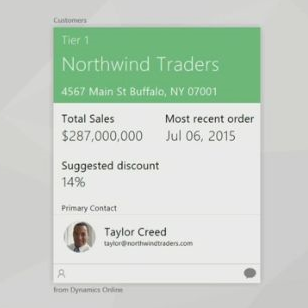 Cortanaと連携してるので「Hey Cortana, show me my customers.」とかいうとDynamics CRM上の自分の顧客情報を表示してきます。![]()