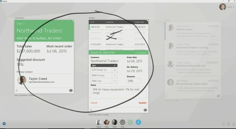 シナリオとしては「なんか顧客でヤバい状況になったのですぐに仲間と連携して問題解決しよう」的な感じです。ここで使うツールとして「GigJam」という新しいコラボレーションツールが登場します。