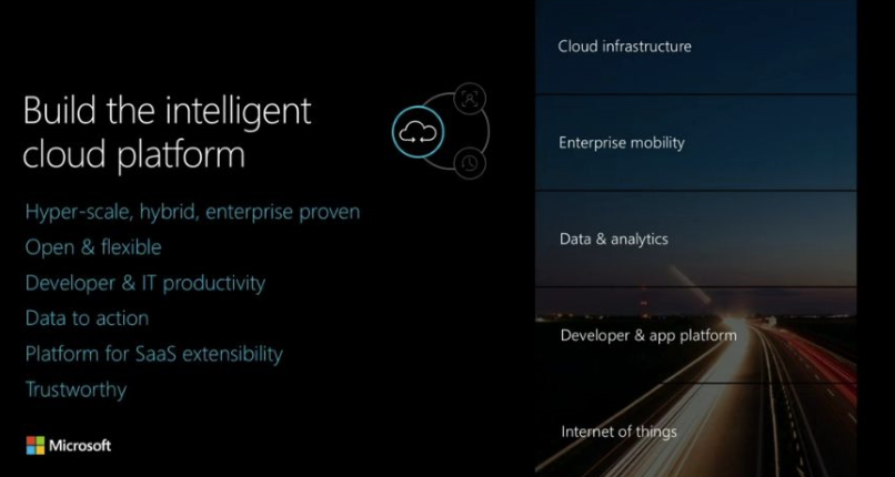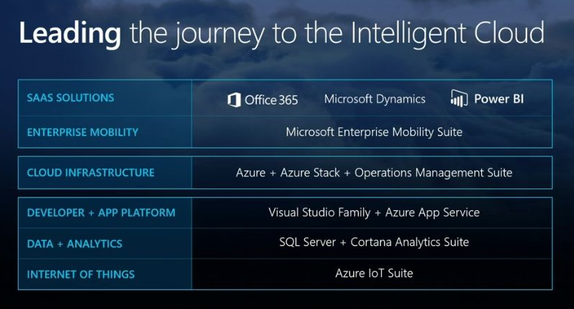 SaaSであるOffice 365やDynamics、Power BI、EMS、それからAzureにAzure Stack、OMS、Visual StudioにCortana Analytics Suite、SQL ServerやAzure IoT Suiteなどかなりの部分をカバーできるようになりました。