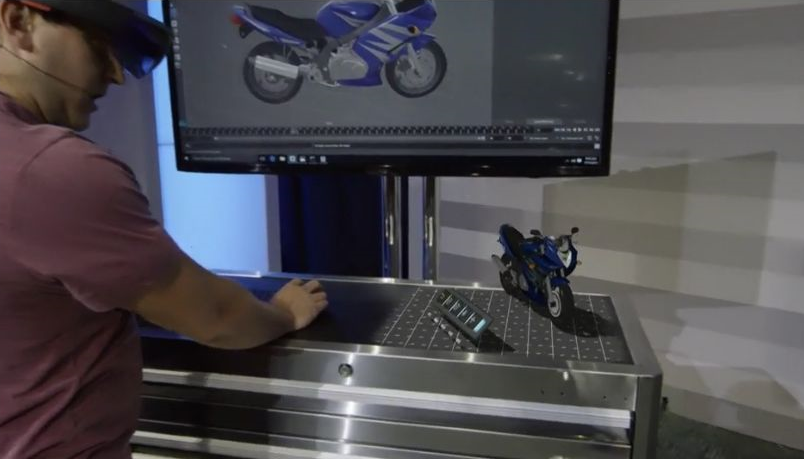 おなじみ(?)のHoloLensのデモです。装着者はYo-yo氏らしい(クレジットでず)![]()