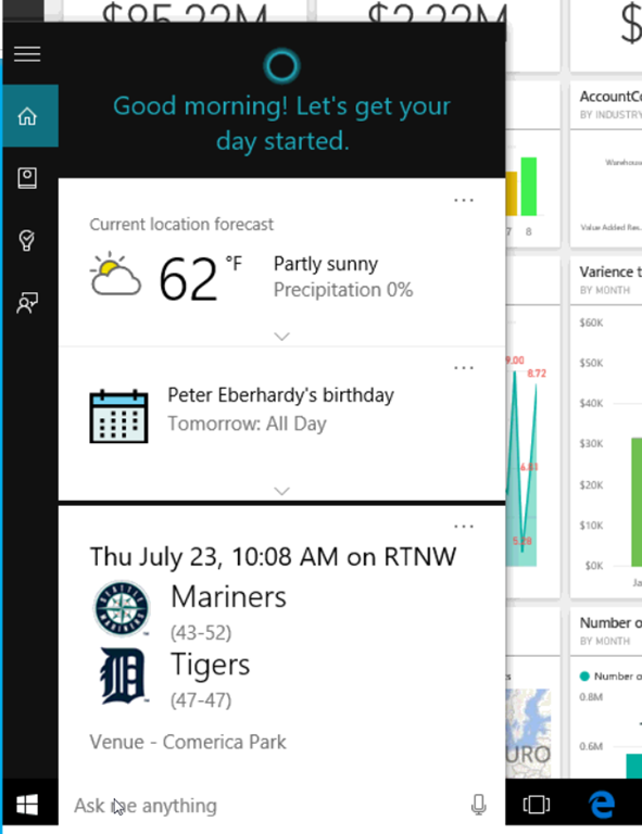 Cortanaさんが良しなに応答してくれるので(喋って問い合わせるかどうかは置いておいて)便利そうですね。