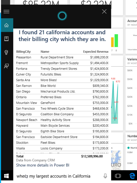 あとはCortanaに質問を投げてPower BI経由で応答がくる様子をいろいろとデモ。![]()
