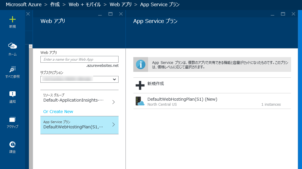 Web Apps作成時、プランの選択がわかりやすくなりました。