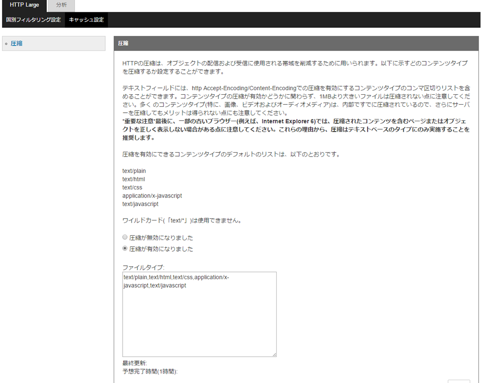 - エッジサーバー上で圧縮を行う場合は圧縮するコンテンツタイプを指定します。