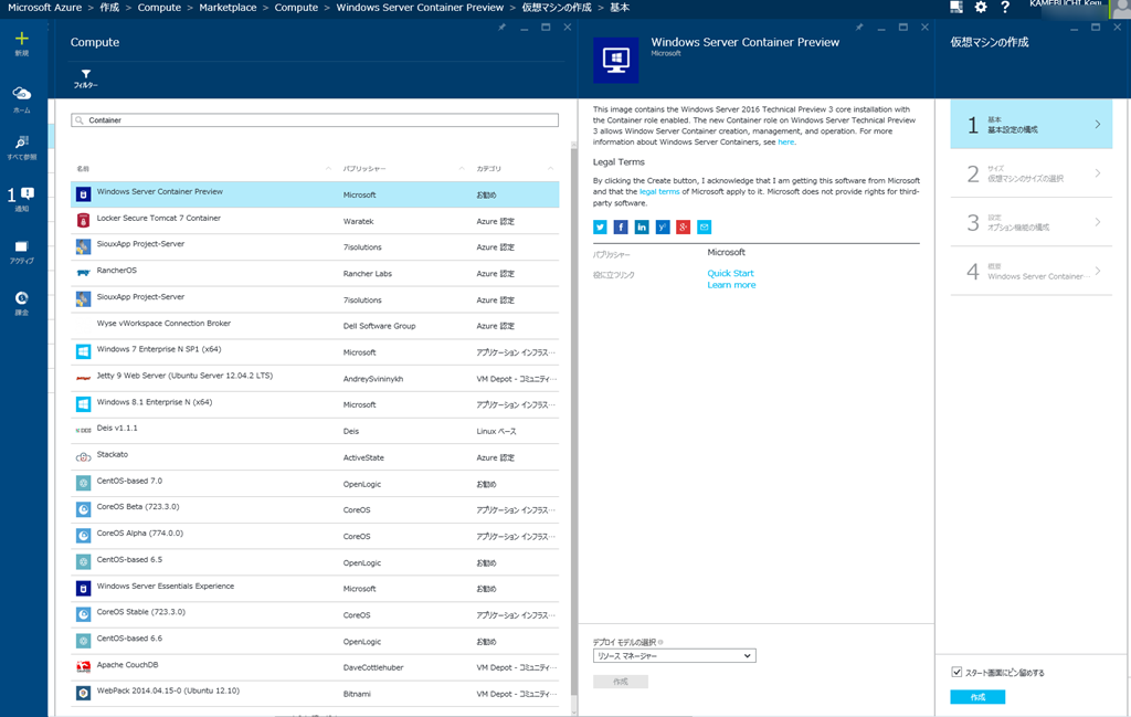 さて目玉(?)のWindows Server Containersですが、Azure上ですぐに試すことができます。