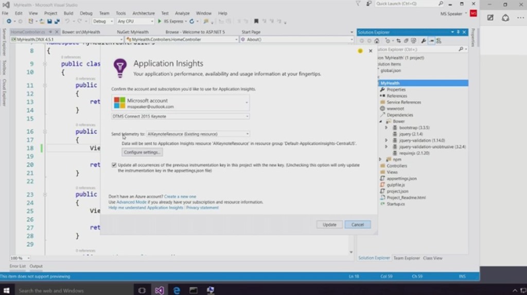 Application Insights統合やAzure統合ということでVisual Studioからウィザードで簡単に設定やデプロイなどできます。