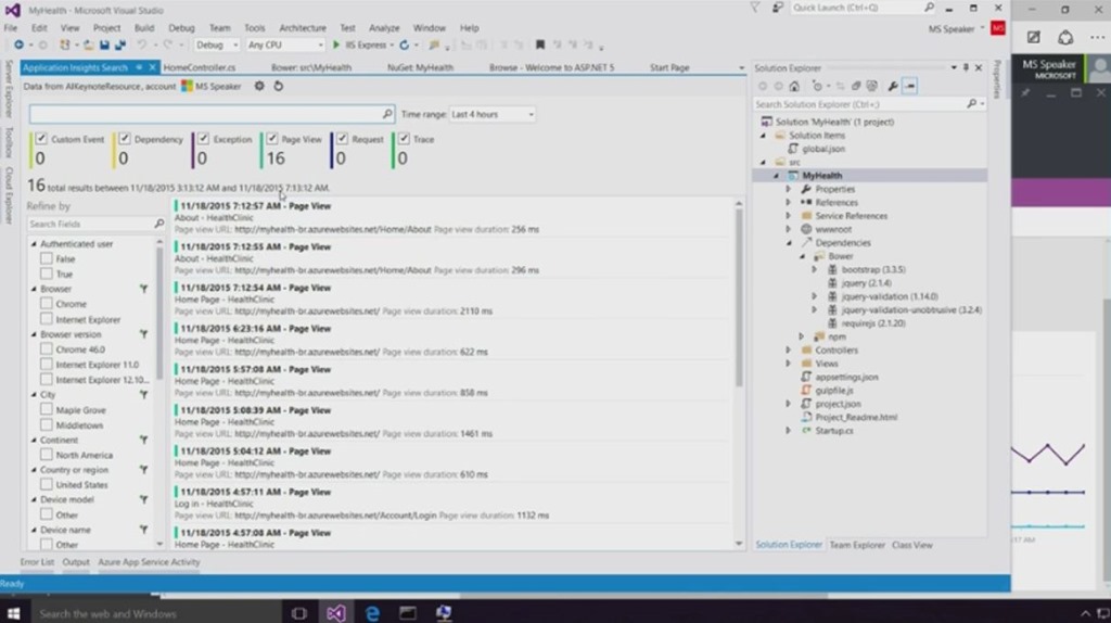 収集したテレメトリなどはVisual Studio上でも見ることができるので開発者はVSから離れず開発できますね。