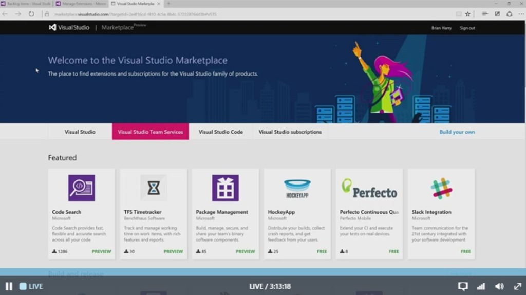 Visual Studio Marketplaceというのもリリース。Visual Studio Team Services Extensionsに機能を追加していくこともできるようです。