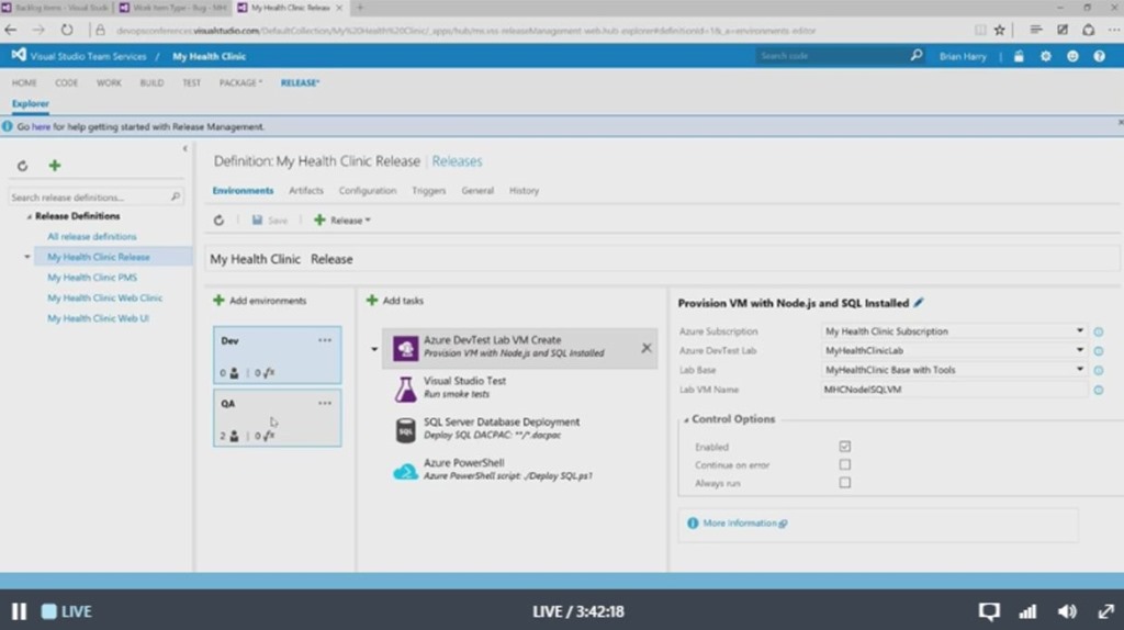今までRelease Management(ワークフロー的な)のが別物だったのが組み込まれたのでビルド・テスト後にチェック後リリース(デモではAzureへ)というのができます。