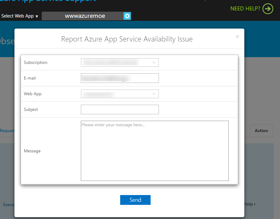 以下のリンクからAzure App Serviceのサポート用ページに行くことができます。