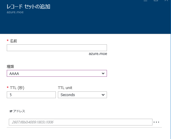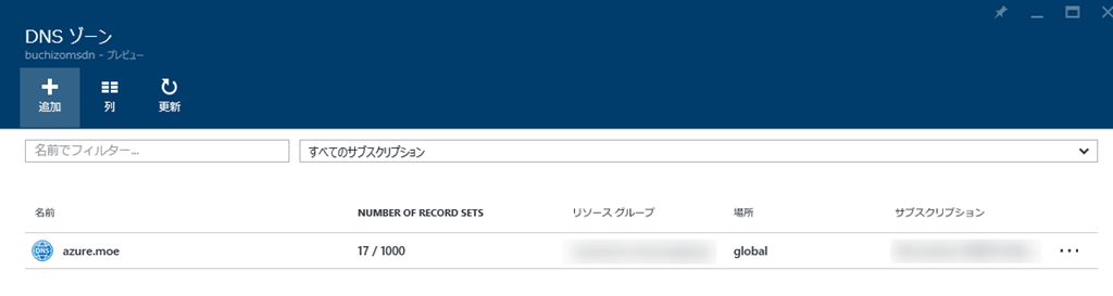 今時点だと大元となるDNSゾーンの作成だけはAzure PowerShellやCLIなどで行う必要があるようです。まぁとはいっても実装されるのはすぐじゃないかなと思ってます。