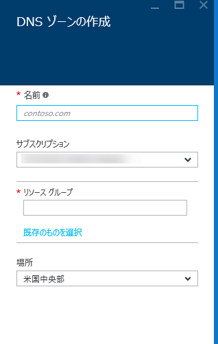 すでにDNSゾーンがある場合は参照からDNSゾーンを選ぶことで以下のようなブレードが開きます。