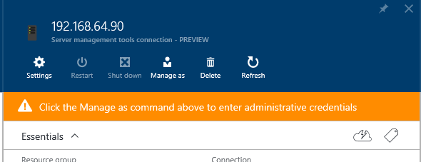 上部の「Manage as」メニューをクリックして管理対象サーバーの認証情報を入力しましょう。