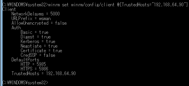 winrm set winrm/config/client @{TrustedHosts="ゲートウェイのIPアドレス"}