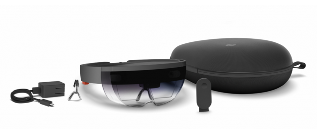 HoloLens Developer Editionには本体のほかにClicker、キャリーケース、マイクロファイバークロス(拭く用か)、充電器、マイクロUSBケーブルが含まれるようです。