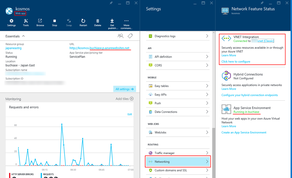 普通のApp Serviceと違ってClosedな環境にしたり、VNETにつなげられるということはVPNであれこれしたりできるわけです。
