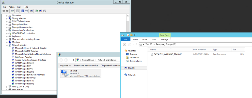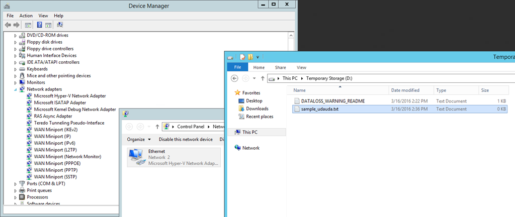 Dドライブ(ホスト上の一時ディスク領域)とネットワークアダプタの状態です。適当にファイル作っておいておきます。