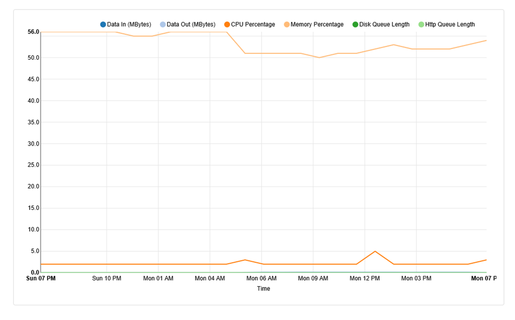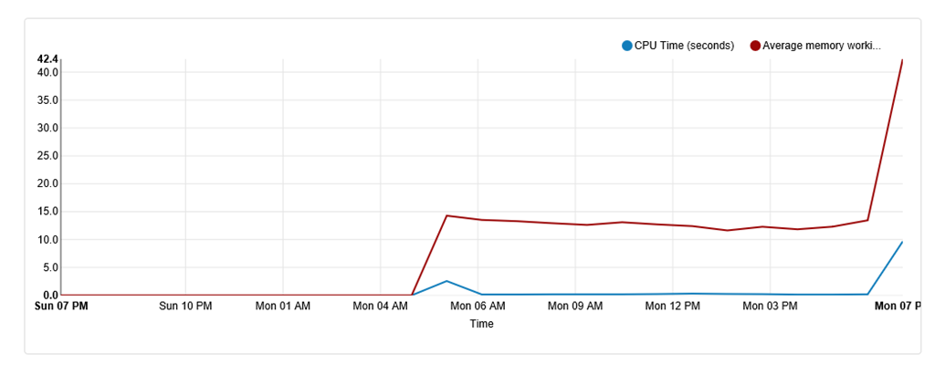 ではApp Serviceプラン全体ではどうかというと「App Service plan Metrics per Instance」で見ることができます。![]()