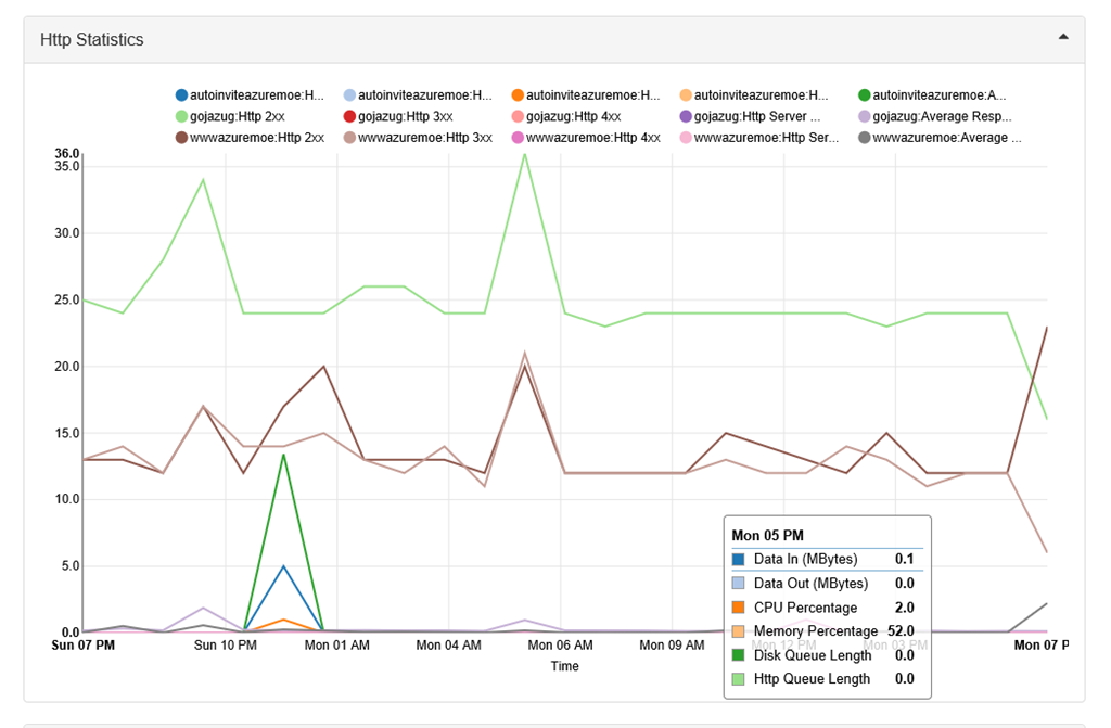 (そのプランに含まれる)サイト単位でのCPU・メモリ、HTTPの状態やネットワークの状態など![]()