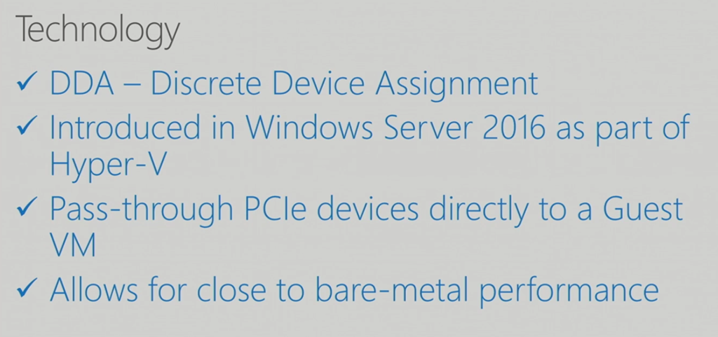 アーキテクチャはHost OSにGPU刺してDDAでパススルー、仮想マシンに提供という感じ。